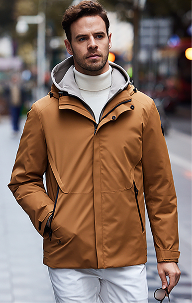 從面料源頭把控,選用具備特性的功能性面料多方位滿足男士在不同,場景下的穿著需求很大程度提升了服裝品制度、實用性